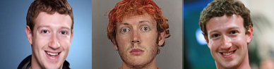 Ho aperto Photoshop e ho accostato quell’immagine a due dell’inventore di facebook prese in rete a caso. La somiglianza è impressionante, guardate voi stessi.