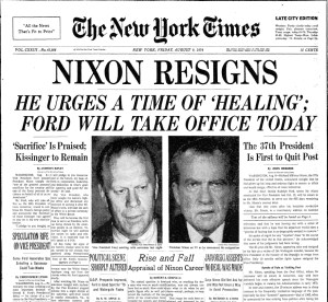 Era il 17 giugno 1972. Quei cinque uomini arrestati facevano parte dei “White House Plumbers” – gli idraulici della Casa Bianca – e venivano usati per i lavori sporchi. Fu l’inizio del Watergate – la campagna giornalistica del «Washington Post» – che portò all’ipotesi di impeachment per Nixon che invece si dimise prima che il procedimento potesse iniziare.